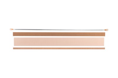 ヒーター、フッ素樹脂絶縁シート(ヒーター上部)、フッ素樹脂絶縁粘着テープ(ヒーター下部)、カッター刃があります。