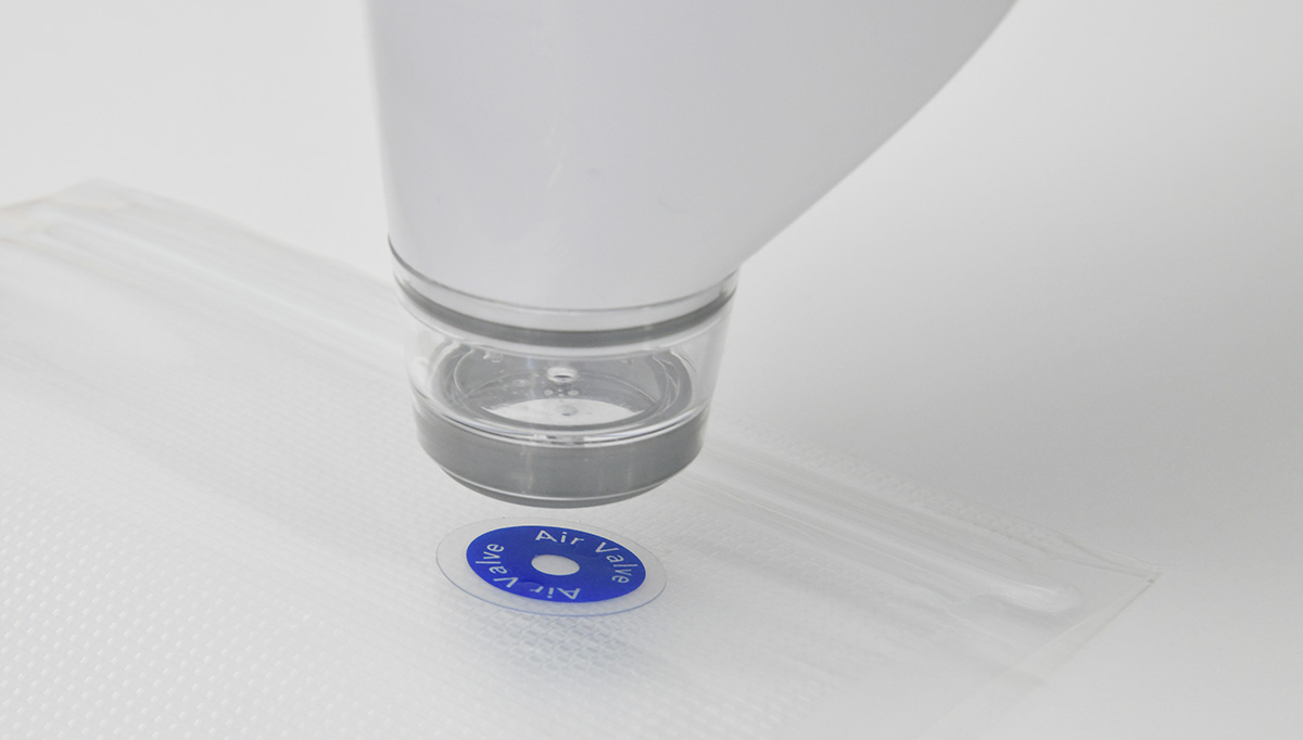 - 専用袋についているエアバルブの青いシールは絶対に剥がさないでください。